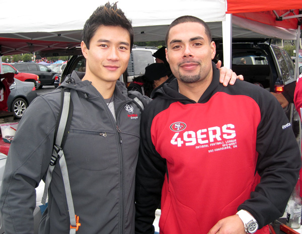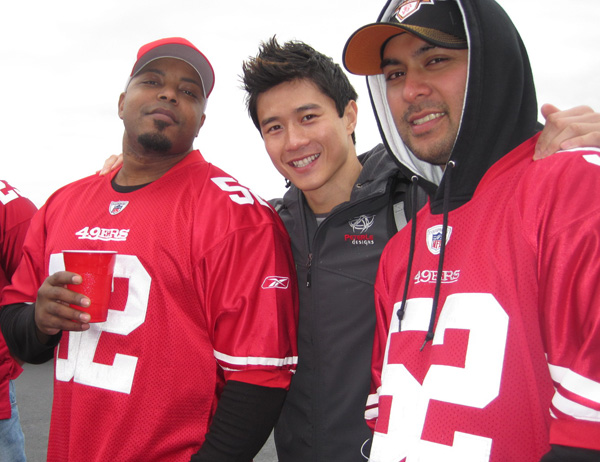 It doesn’t really matter; as much as I like watching football, I enjoy hanging out with my friends even more. For this game, my buddies from Gold’s Gym came and it was great seeing everyone. The weather was 48 degrees but my Peter Le Designs jacket kept my muscles from freezing.