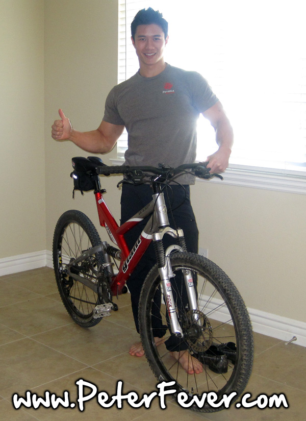 Nice feet! 😉 I got that bike in green! (robust and bouncy~~ 🙂 riding to work for cardio lately, don’t know if that will save the world, though. Looks like you are still a minimalist, too, right? Man, I’m sure Mother Earth is very fond of you! After all, you are one of her most beautiful creations…! (PS: