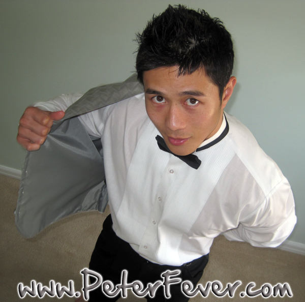 His birthday is a black tie event, so I went through my neat closet and pulled out my one and only tuxedo. Trust me, I would rather come to the club half naked but they might not let even PeterFever through the doors without a tux.