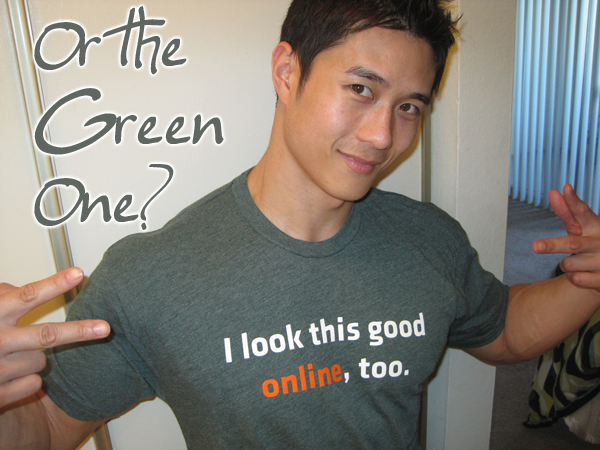 This is such a tough decision considering how good you look in both of them, but if I had to choose just one I would pick green. To be completely honest, I prefer you shirtless. 😉