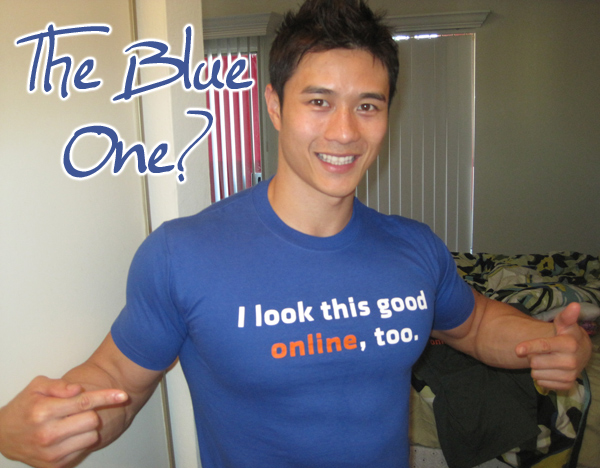 You always look good, but I prefer you shirtless. but since you gave us 2 choices, I’ll go for blue. even with a shirt, I can still notice your abs…;)