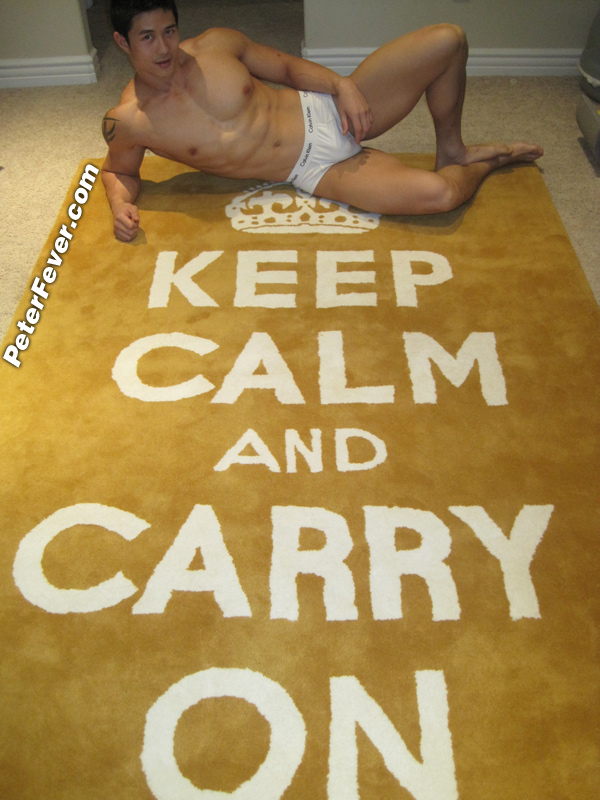 The rug says, “Keep Calm and Carry On”. It was taken from a poster that the Ministry of Information in England produced in 1939 during WWII, to raise the moral of the public in case they were invaded. Even though 2.5 million were printed, it was never used. The poster was rediscovered in 2000 and now it is used on a wide variety of decorative products, like my rug.