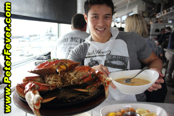 After the interview, I headed to Pier 39 to enjoy the great weather, watch the seal lions, and chow down on fresh crabs. I am on the ‘see-food’ diet; whenever I see food, I eat it! Guess which restaurant I was at?