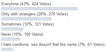I guess my sex life is too boring compare to other members here lol. I have once or twice a month but only to my close guy friends. See, I don’t like doing it with strangers. Its too risky for me even if there are condoms.