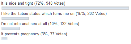 If you want to be part of the original survey, click here and take it – Anal Sex Survey