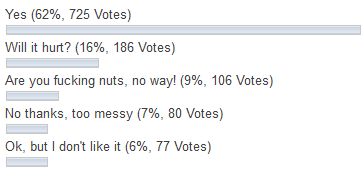 Very informative survey peter. What would be your answer to “if you were asked to have anal sex right now what would you say?”