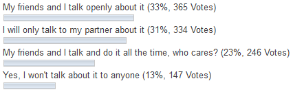 Well it seems that anal sex is still a taboo subject when it comes to talking to either your friends or partner about it. But nevertheless, the survey is what I expected.