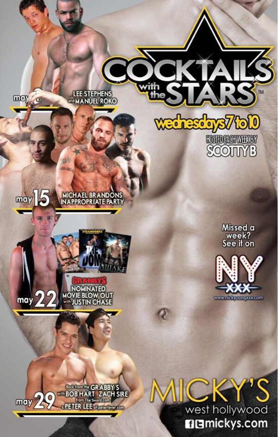 So, I have exciting news to share with everybody! I will be in West Hollywood, California on May 29th for Cocktails with the Stars at Micky’s. It will be fun to be back in California and get in touch with more of my fans. Come to the event, say hi, I won’t bite…hard ;). It’s an amazing chance to meet and hangout with a bunch of great porn stars like Bob Hart, who I got to meet at Phoenix Forum, and I’ll be bringing an extra special guest, you all know very well, so you won’t want to miss this.