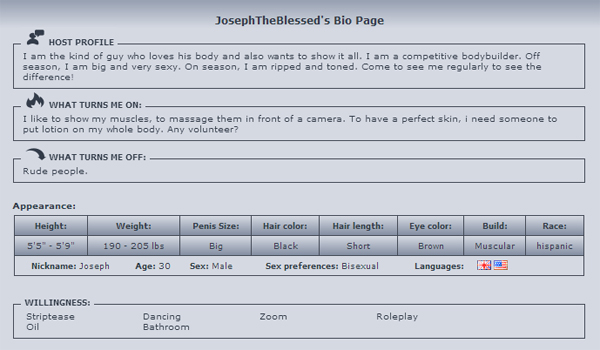 Have you seen JosephTheBlessed on LiveCams? If you haven’t, then you’re missing out on one hot guy. He certainly is blessed and I can always appreciate a fellow bodybuilders banging body. Want to know what’s even better? He’s into massages. He’s definitely one of the hottest guys I’ve seen on LiveCams yet.