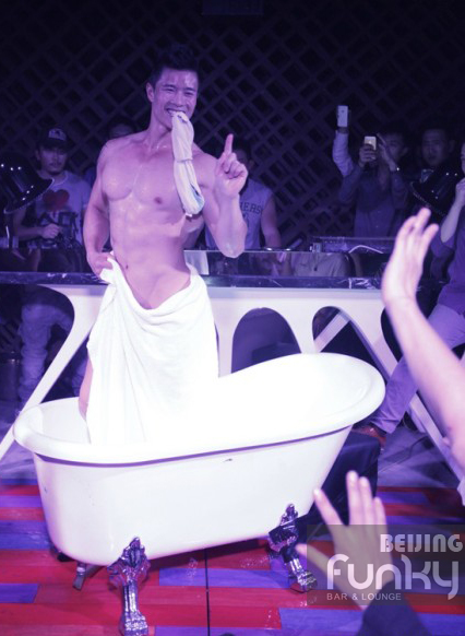 Now, here are the pictures you’ve all been waiting for. This is from my performance as a sexy business man whose job was to dance, strip, and get wet. For my fans who couldn’t come out to see me in China, you missed a sexy show but here’s a little peek of what happened.