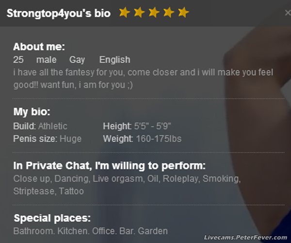 Looking for a tough guys to hang with tonight? This LiveCam model definitely has the attitude to turn you on. Meet StrongTop4You. He is into role playing and making you feel good. Why don’t you ask him about his sexy tattoos?