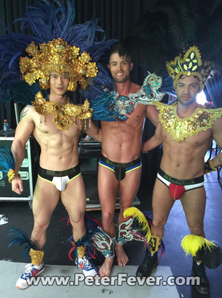Hey crew! I’m here to give you a sneak peek on set of Andrew Christian’s “Blowboy” video. It’s going to be a really hot video featuring Ryan Rose. Sean Zevran. Jacob Ford, Dominic Pacifico. We all wore costumes made of colorful feathers and hot underwear. It’s going to be great but you’ll have to wait and see how it turns out, stay tuned. In the mean time here are some pictures.
