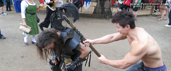 Where else can you see a community dress and act like people in medieval times? The Renaissance Fair. I took a trip to one over the weekend and it was perfect. I chowed down on turkey legs and spicy pickles. I threw battle axes at the target range and threw tomatoes at the heckler. I met a few of the actors and took some photos with them. One guy wanted me to take a photo with me chopping off his head. For a moment I thought it was going to rain since it was so cloudy but luckily it didn’t. If you have never been to one, don’t miss out this labor day weekend because it’s their last weekend.