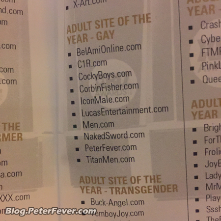 It was that time of year again when all the biggest name in the industry meet in LA for the conference and show to present awards to companies and individuals for their achievement. PeterFever was nominated for the best gay adult site of the year, although we didn’t win, we are happy to be among tough competitors. We couldn’t have been up there without your support. It’s probably the only time I have to dress up in a tux, but I rather be naked 🙂