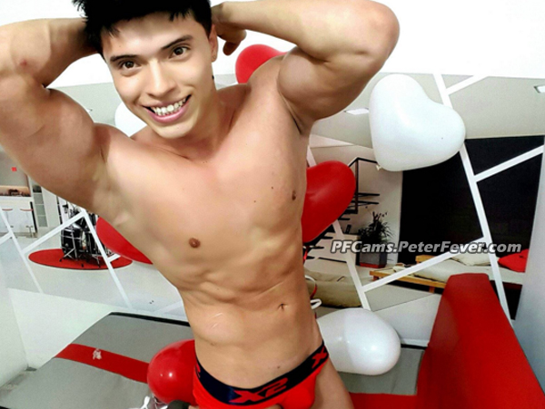 I chatted with him with a group of other guys. We all got to know him together and as we tipped him and sent him stickers he started to strip and touch himself. He started by running his fingers over his nipples and trailing down to his abs. He revealed his cock and began jerking it.
