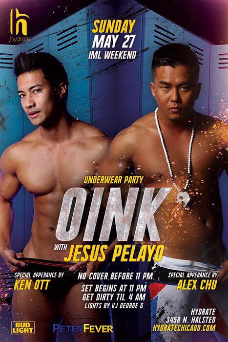 After the IML festivites on Saturday, top off your weekend with a hot late night Sunday at 3458 N. Halsted, as underwear party “OINK” takes over Hydrate with appearances by Ken and Alex. Don’t miss this rare opportunity to meet our lustworthy twosome close up and personal over Chicago’s big annual weekend.
