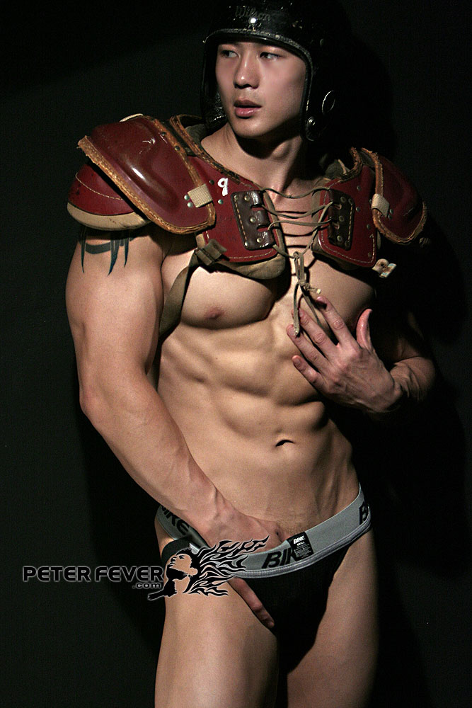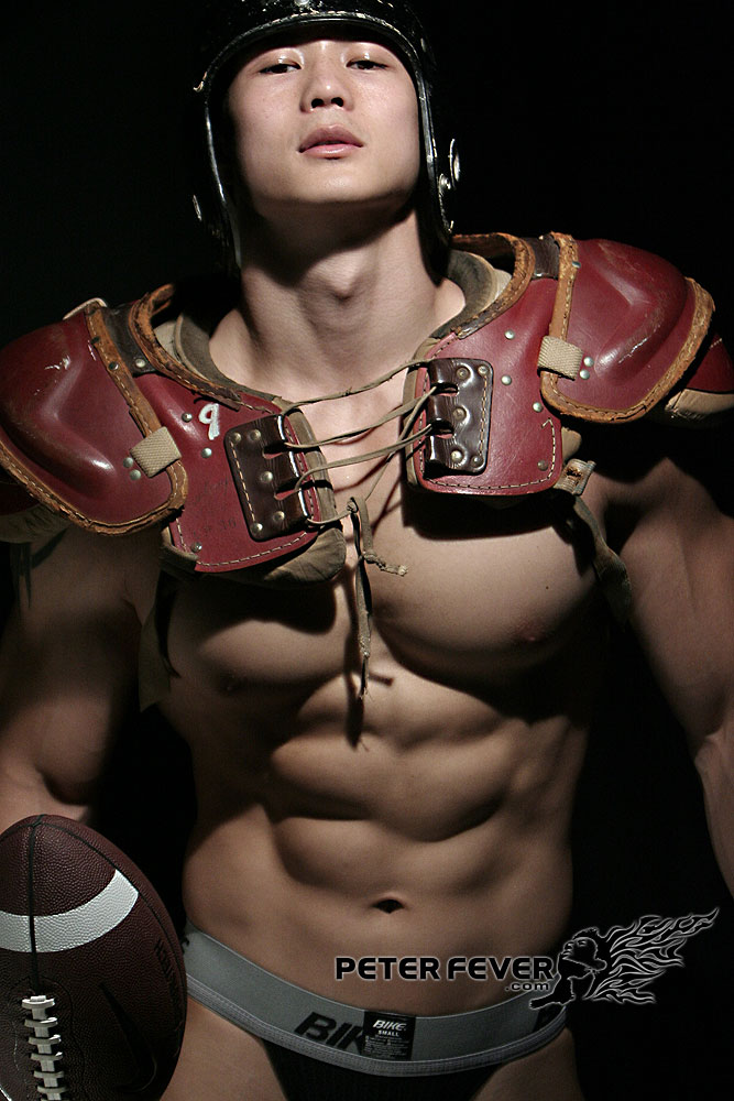 For you, something hot and timely for this Thanksgiving #TBT. Here’s a beautiful, moody photo shoot of Peter Le in 1940s vintage foorball gear. When you’re watching the holiday games today and tonight, picture him in all his muscular loveliness. And give thanks!