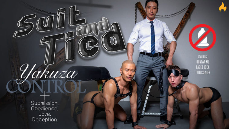 Asian gay superstar Duncan Ku is a busy boy of late. His recent foray into fetish and dark adult suspense “Suit and Tied” is hitting the pages of PeterFever.com with a BANG! With a script straight from the fertile mind of Danny Zeeman and realized through Koloff’s able direction, it’s the first synergy of PeterFever East and the hotties of our U.S.-based studio. Ku was flown from Taiwan to the States to portray the dark and manipulative Master, a suited mystery man who uses fetish and mental domination to get what he wants from a pair of unsuspecting adepts (PF fan favorite Tyler Slater and internet fetish idol Caged Jock.) It’s the hottest project out there, and here’s what XBIZ scriber J.C. Adams has to say: